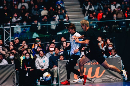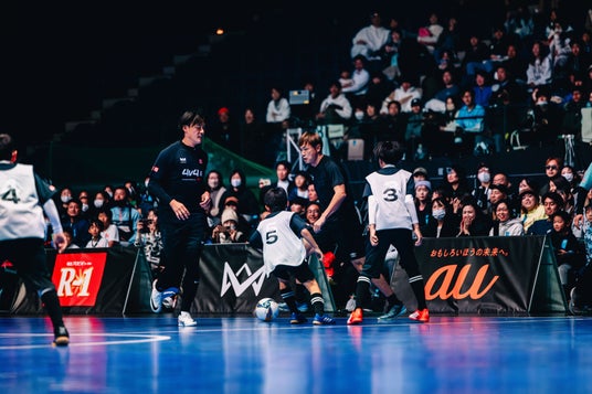 本田と豪華レジェンド選手たちの4v4試合「レジェンドマッチ」は、チーム本田とチーム長友に分かれて対戦。チーム本田には、本田、家長選手、酒井選手、李選手に加えて、Fリーグ 立川アスレティックFC 酒井遼太郎選手が参戦。チーム長友には、長友選手、遠藤選手、乾選手、宮市選手と、Fリーグ 立川アスレティックFC 上村充哉選手に参加いただきました。試合では、4v4本大会とは違い5号球を使用*4しました。