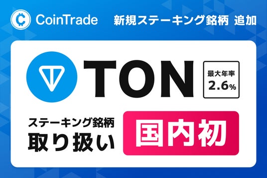 株式会社マーキュリー(本社:東京都渋谷区 代表取締役社長:都木 聡、以下、「当社」)は、当社の提供するステーキングサービス「CoinTradeStake(コイントレードステーク)」において、国内初※の取り扱いとなるトンコイン(TON)のステーキングを2026年1月21日に開始することをお知らせいたします。