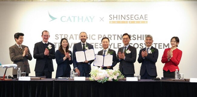 キャセイ(本社:香港、最高経営責任者:ロナルド・ラム)は2023 年12月19日、韓国の三大免税店のひとつである「新世界免税店」と業務提携を締結する調印式を、韓国ソウル市内のウェスティン朝鮮ソウルにて執り行いました。当社は同免税店と業務提携を結ぶ初めての外資系航空会社となり、2024年2月より、「キャセイ」会員はもちろんキャセイパシフィック航空で韓国へご旅行されるすべてのお客様に、新世界免税店での買い物で利用できる様々な特典を提供します。この提携により、特に韓国における、当社のプレミアム・ライフスタイル・ブランドとして、ならびにマイル通貨としてのアジア・マイルの認知向上を目指します。