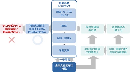 サステナビリティ経営は単なる環境活動や開示義務対応ではなく、持続的成長を実現するための取り組みそのものです。