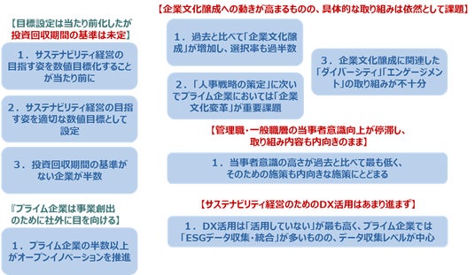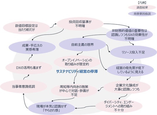 今回サステナビリティ経営が停滞する要因として、調査結果に基づき、要因仮説を以下のように考察いたしました。