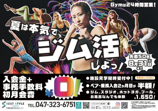 ベストスタイルフィットネス新浦安は「自分にとっての”BEST”を叶える」をコンセプトに、有酸素マシン・ウェイトマシン・フリーウェイト・スタジオ(常温、暗闇、ホット)・プール、お風呂等を擁した総合型フィットネスクラブです。