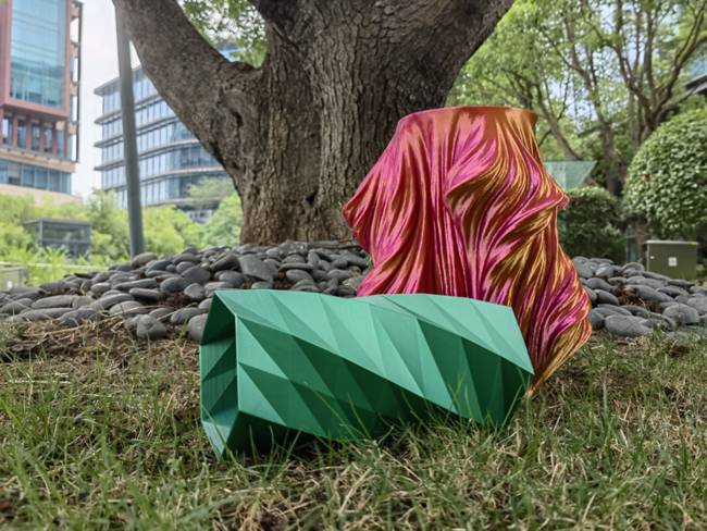 見る角度(造形する角度)によって見え方が変わる不思議で美しいカラーのプリントが可能です。