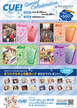 株式会社鉄人化計画(所在地:東京都目黒区、代表取締役社長:根来拓也)は、当社が運営する「カラオケの鉄人」の秋葉原昭和通り口店において、株式会社リベル・エンタテインメント(所在地:東京都渋谷区、代表取締役社長:林田 浩太郎)の次世代声優育成ゲームを原作とするTVアニメ『CUE!』(キュー)とのコラボレーションキャンペーン(以下「コラボ」)を、TVアニメ『CUE!』Blu-ray 第3巻が発売される2022年5月18日(水)より開催します。