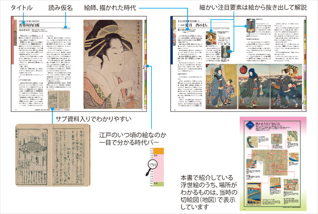 本書を読めば、浮世絵の「どこに注目したらいいか」がよく分かります。絵師や描かれた時代はもちろん、細かな注目要素は浮世絵から抜き出して解説。江戸の各時期の様相についても見えてきます。