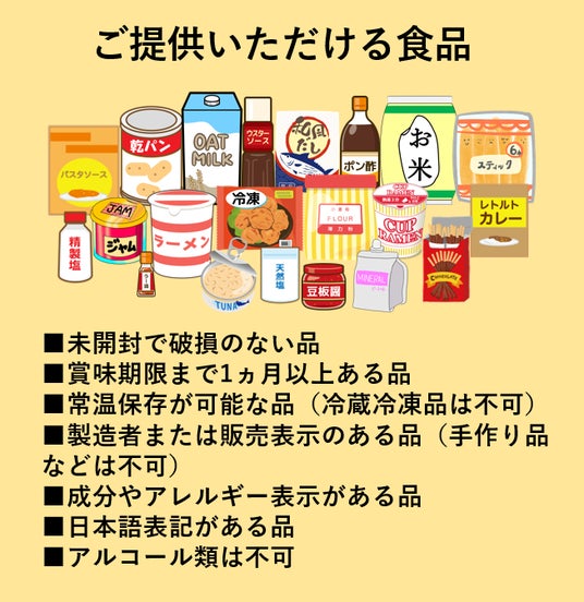 全日程出店いたしますので、ご家庭で使いきれない飲料・食品を是非お持ちください!