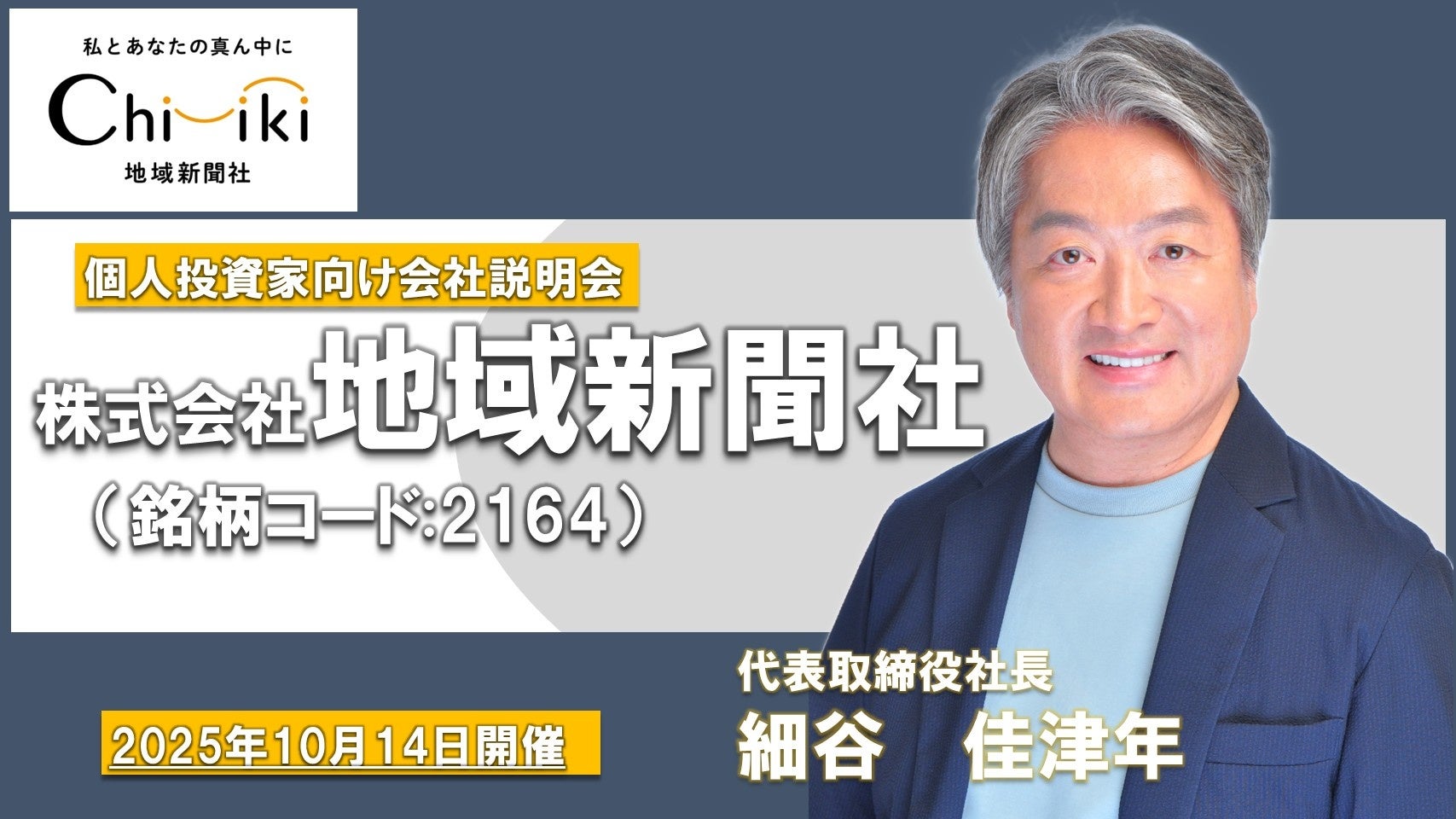 株式会社地域新聞社(本社:千葉県八千代市、代表取締役社長:細谷 佳津年、証券コード:2164、以下「当社」といいます。)は、2025年10月14日に個人投資家向けオンライン会社説明会を開催いたしました。