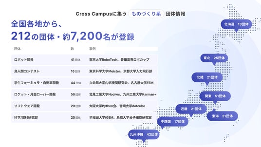 「全日本学生ものづくりExpo」は、Giving Campaignを通じてつながりのある、ものづくり分野で活動する全国の学生団体・研究室(計212団体、約7,200名)に対して呼びかけを行うほか、全国の大学生・高専生に広く開かれたイベントです。