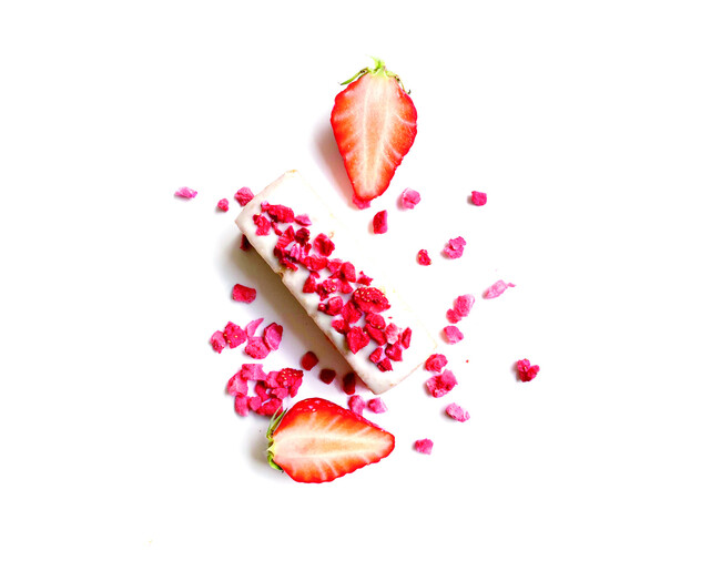 フリーズドライのいちごを、まろやかな甘みの練乳とホワイトチョコレートの優しい甘みと合わせたケーキです。