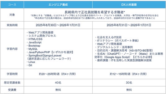「エンジニア養成コース」「DX人材基礎コース」の2講座を提供
