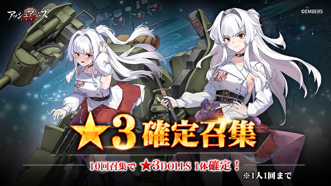 「★3 確定召集」では、10回の召集を行い、そのうち★3 DOLLSが1体以上確定で出現します。