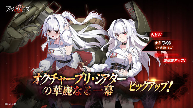 開催期間中、「オクチャーブリ・シアターの華麗なる一幕」召集で新登場DOLLS★3 中戦車「T-44」(犬塚いちご)がピックアップされ確率アップします。