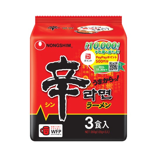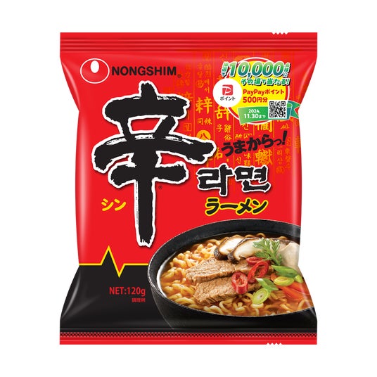 本キャンペーンは、農心ジャパンの全製品が対象となっており、ご購入いただいたレシートを撮影してLINE上で応募いただくことで、抽選で10,000名様にPayPayポイント500円分が当たります。なお期間中、「辛ラーメン(袋麺・3食入 袋麺・レギュラーカップ)」「辛ラーメン キムチ(袋麺・3食入 袋麺・レギュラーカップ)」の6品がキャンペーン告知入りの特別なパッケージで登場します。まだ農心ジャパン製品に触れたことのない方も、この機会にぜひお試しください。