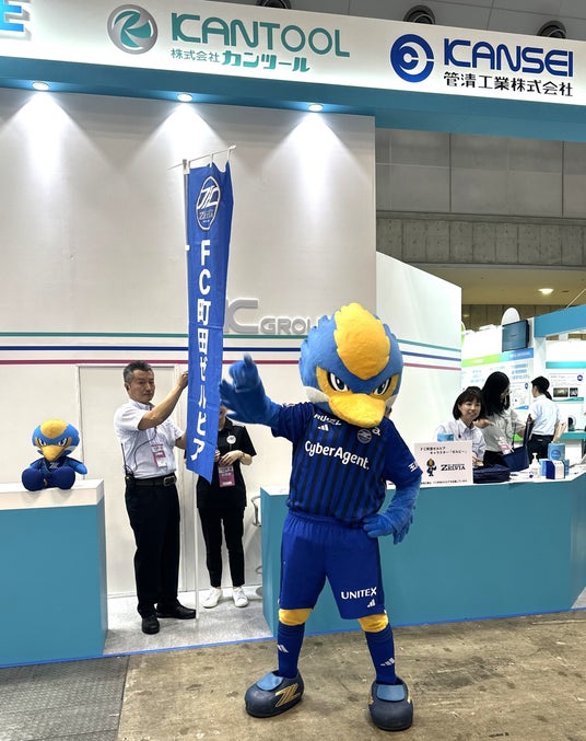 また下水道展初日には、当社東京本部が協賛しているFC町田ゼルビア キャラクターの「ゼルビ―」君が、会場に遊びに来てくれました!