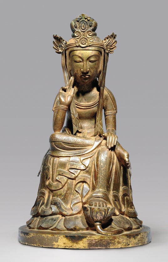 ・壁画に描かれていた太陽神や弥勒に対する信仰の広がりを、インド・ガンダーラ、中国、そして日本の多くの絵画・彫刻など約130件(国宝1件、重要文化財15件を含む)の作品でたどる。