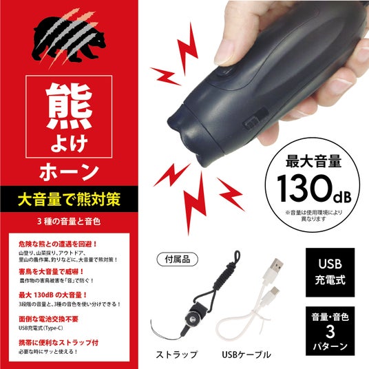- ホーンや真鍮鈴は大音量を発するため、市街地や公共の場での不必要な使用は避け、本来の目的(獣害対策)に沿ってご使用ください。