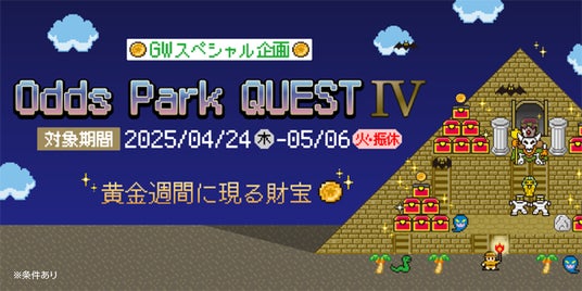 - 【キャンペーン一覧】・「オッズパーククエストIV-黄金週間に現る財宝-」 【実施期間】2025年4月24日(木)~5月6日(火・振休)