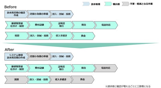 図:中種子町「郵送請求キャッシュレスサービス」導入前後の業務フロー