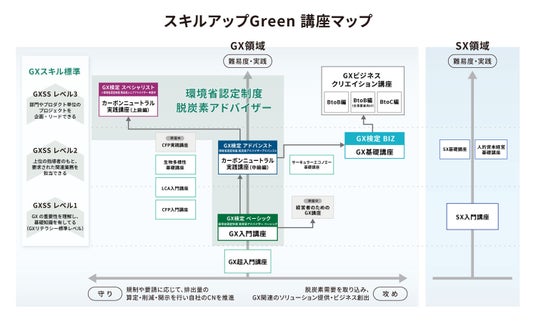 スキルアップNeXtは、「スキルアップGreen」でGXを体系的に学べる講座や、GX推進に必要な知識やスキルを測る「GX検定」で企業のGX推進をワンストップでサポートしています。