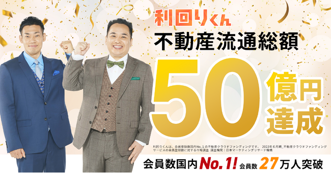 利回りくんは2023年6月に国内会員数で2年連続No.1を獲得し、2021年6月からのサービス開始以来、現在で27.9万人の会員登録を達成しています。さらに、2年6ヶ月での不動産流通総額50億円の達成とともに、これまでに組成された64プロジェクトのファンドのうち、17プロジェクトが元本毀損なしで償還されています。