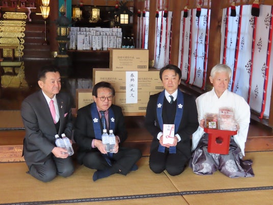 株式会社丸久(本社:防府/代表取締役社長 田中康男)は地域の予測困難な有事に備え、2023 年11月7日より、防府天満宮監修による「防府天満宮の水」を災害備蓄水として防府天満宮に寄贈し、かつ販売額の一部を寄付する協定を防府天満宮との間で締結いたしました。この度、2回目の「防府天満宮の水」寄贈をいたしました。