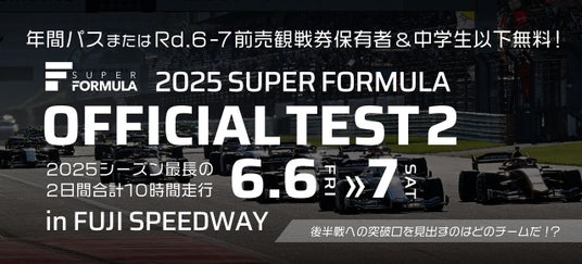国内最高峰で最速のフォーミュラカーレースシリーズである全日本スーパーフォーミュラ選手権(以下「SUPER FORMULA」)を開催する株式会社日本レースプロモーション(以下「JRP」)は、6月6日(金)・7日(土)の2日間、富⼠スピードウェイ(静岡県小山町)で開催する2025年シーズン第2回目となる公式テストの開催概要を発表しました。