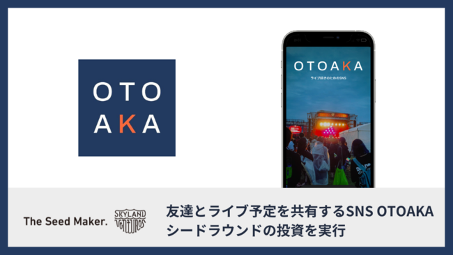 Skyland Ventures(本社:東京都渋谷区、パートナー・CEO:木下慶彦、以下SV)は、この度、ライブ体験を最大化するアプリ「OTOAKA」を提供する株式会社ウォールオブデス(東京都世田谷区、代表取締役:堤 真聖)の資金調達ラウンドに参加したことをお知らせします。