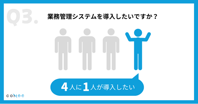 業務管理システムをまだ導入していない人に、業務管理システムを導入したいか聞いたところ、4人に1人(25%)が「導入したい」と回答。