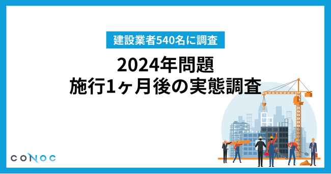 建設業界のDXを推進する株式会社CONOC(本社:東京都渋谷区、代表取締役:山口一、以下:CONOC)は、建設業者540名を対象に「2024年4月に施行された時間外労働の上限規制対策の実態調査」を実施したことをお知らせいたします。