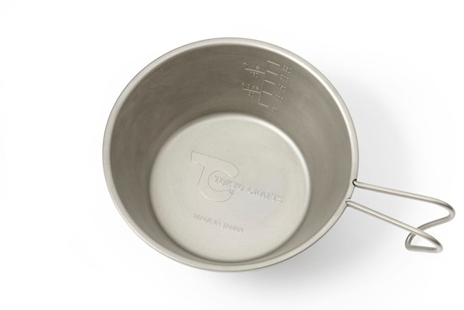 強くて軽いオールチタン製のシェラカップが新登場。 金物の町「燕三条」で製造した Made in Japanクオリティの優れた耐食性と軽さ、強度を兼ね備えたアウトドアに最適なシェラカップです。50ml ~ 250ml の50ml毎の目盛りとお米0.5~1合を計るのに便利な 90ml 毎の目盛り付き。コップや食器、計量カップ、調理器具と様々な使い方できる万能なアイテムです。