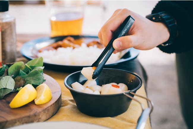 燕三条の技術を活かした反発力が高いミニトング。薄く、軽く、耐久性、耐食性に優れたステンレス素材を使用して います。シェラカップと相性が良く、お箸の代わりとして、漬物・薬味・お菓子など掴むのにちょうどいいサイズです。ブラックは、黒酸化発色を施したマットブラック仕様。発色加工の特性上、すべて同じ仕上がりではなく多少の色むらが出るのも個性として楽しみたい一品です。