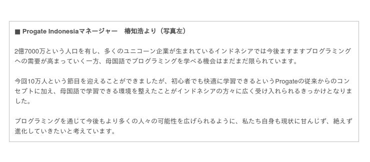 今後もProgateはインドネシアの多くの方にプログラミング学習を提供できるように邁進してまいります。