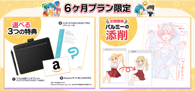 パルミーでは6ヶ月プランご契約の場合、3つの中から選べる特典を1点&プロによる添削(2ヶ月に1回実施)を無料でプレゼントしております!この機会にイラストを学んでみませんか?