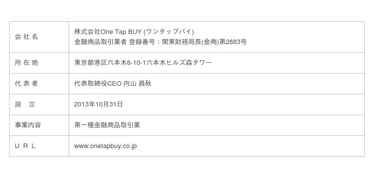 【One Tap BUY 会社概要】
