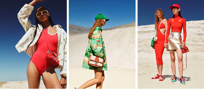 「ストライプにスパンコール、メタリックレザーのミニスカートにニットのツートーンクロップドトップス、レザージャケットにグリッターポルカドット – ひねりを効かせるのが、大胆でダイナミックなロンシャンウーマンのエッセンスなのです。」(クリエイティブ・ディレクター ソフィ・ドゥラフォンテーヌ)