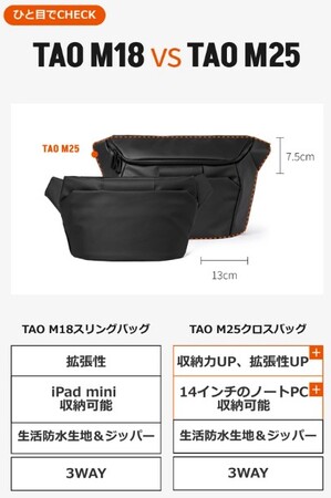 【マクアケ特価・10%オフ】TAO M25クロスバッグ 1個 10,800円