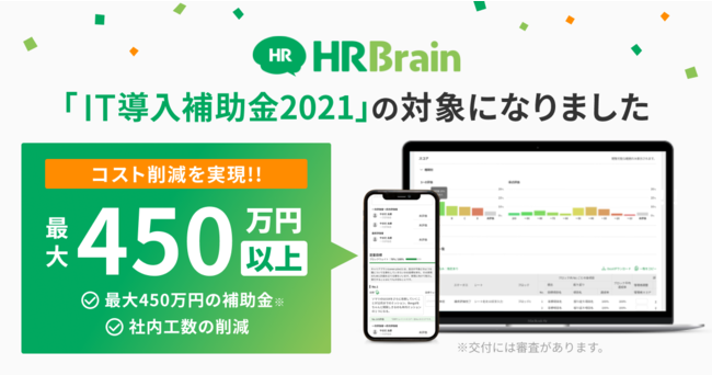 株式会社HRBrain(東京都渋谷区、代表取締役社長 堀 浩輝 、以下「当社」)が提供する、タレントマネジメントシステム「HRBrain」が、経済産業省が実施する「IT導入補助金2021」において、補助金対象のITツールに認定されました。