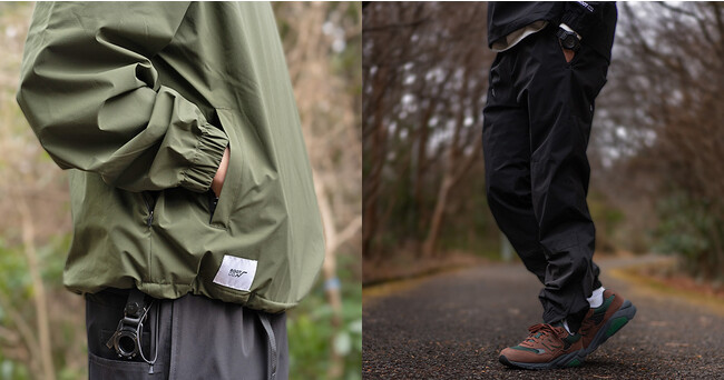 ストレッチリップストップ生地を採用したアウトドアパンツ『PLAY Stretch Track Pants』とプルオーバー『PLAY Stretch Smock』。