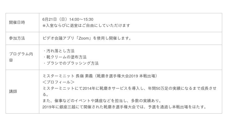 ◆オンライン靴磨きワークショップ概要