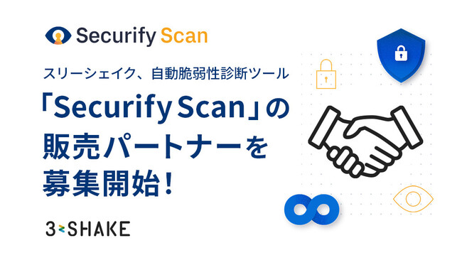 SREおよびセキュリティのプロフェッショナル集団である、株式会社スリーシェイク(本社:東京都新宿区、代表取締役社長:吉田 拓真、以下スリーシェイク)は、自動脆弱性診断ツール『Securify Scan(セキュリファイ スキャン)』の販売パートナー(販売代理店)の募集を2022年9月1日より受付開始しましたので、お知らせいたします。