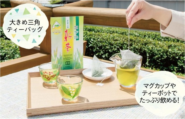 ティーバッグの中には、当社従来品よりも多い4gの茶葉が入っているため、ご自宅やオフィスなどでマグカップやティーポット、マグボトルでたっぷりおいしい新茶が楽しめます。
