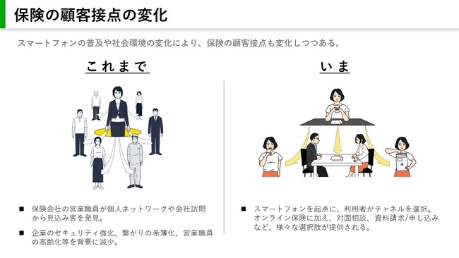 当社は、「コのほけん!」を通じ、販売・ディストリビューション分野からの保険DXを推進し、お客様に時代に即したオンラインでの保険購入体験の提供を通じた利便性の向上を進めてまいります。