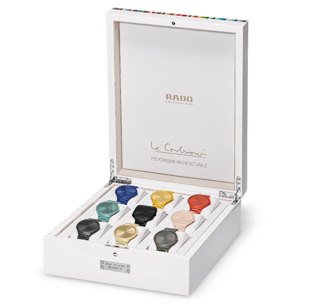 そして、真の愛好家のために、ラドーは本当に特別な作品を作りました。クラシック ブラックの新しいトゥルー スクエア シンライン レ クルール(TM) ル コルビュジエ タイムピースを、フィーチャーした印象的なコレクターズ ボックスです。まさに現在の最新コレクション。この色、並外れたデザイン、ハイテク素材の爆発的なブレンドは、99 個に限定されています。コレクションを最近目にした方々には、これらの時計がそれぞれ個別に単品本でご購入も可能です。