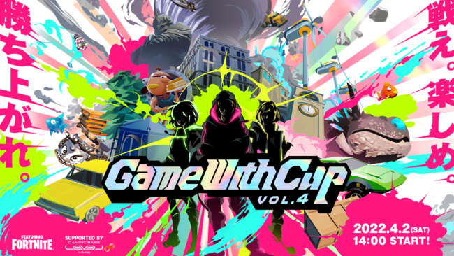 株式会社GameWith(本社:東京都港区、代表取締役社長:今泉卓也、証券コード:6552)は、2022年4月2日(土)に「FORTNITE(フォートナイト)」のeスポーツ大会「GameWithCup featuring Fortnite vol.4 Supported By LEVEL ∞」を開催いたします。本大会には、大人気動画クリエイター HIKAKINをはじめとしたインフルエンサーや、GameWith eSportsに所属する人気選手、プロゲーマーが参加します。