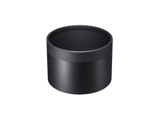 TSC製の軽量かつ高強度な専用かぶせ式レンズフードを付属。先端にはレンズの逆置きなどでの擦れや傷から保護するラバーを施しています。