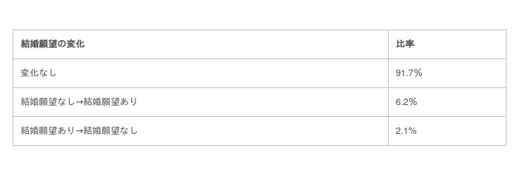 その結果、「結婚願望なし」から「結婚願望あり」に変化したのが6.2%、「結婚願望あり」から「結婚願望なし」になったのが2.1%と、約10%の人の結婚観がコロナによって大きく変化したことが分かりました。