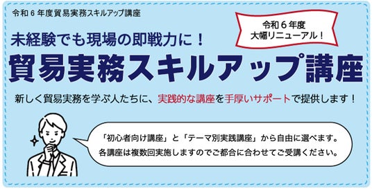 公益財団法人 東京都中小企業振興公社(本社:東京都千代田区、理事長:中西 充)は、新しく貿易実務を学ぶ人たちに実践的な講座を提供するため「貿易実務スキルアップ講座」を開催します。