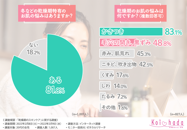 そこで今回、脱毛サロン『恋肌』(https://www.koi-hada.jp/)は、20代の女性を対象に、「乾燥期のスキンケア」に関する調査を実施しました。