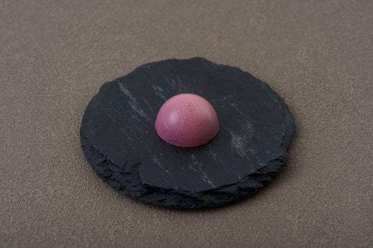 ホワイトチョコレートガナッシュをベースに、あまおうのコンフィチュールを合わせた一粒。
