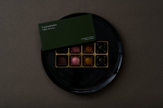 今回は、日本酒という繊細な素材に向き合い、その魅力をチョコレートという形で再構築しました。日本酒をチョコレートに練り込むことで、酒が本来持つ香りの立ち上がりや奥行き、口中での余韻を、様々な角度から表現。それぞれ異なる香りの立ち上がりや甘味、酸味、余韻を持つ4種のフレーバーが完成しました。TAKANOMEのフルーティな香り・味わいを存分に活かしたチョコレートとなっております。さらにTAKANOMEのフラッグシップ商品「TAKANOME / 鷹ノ目」のセットもご用意。日本酒とのペアリングもお試しいただける貴重なこの機会をぜひお楽しみください。